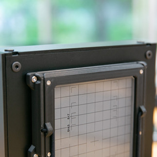 3Dプリントに拘らずに、入手性の高い材料で伝統的なスタイルを踏襲した大判カメラを作りました。筐体はアルミフレームをメインに使用し、小さめのパーツには3Dプリンターとレーザーカッターを使用しています。